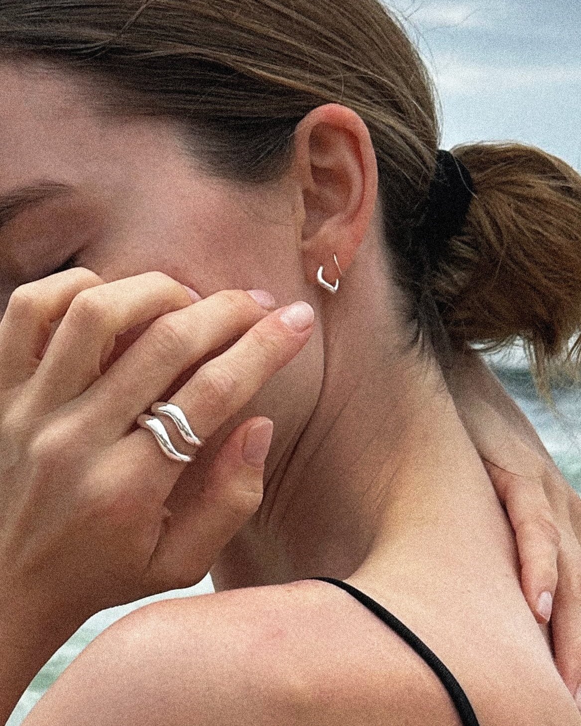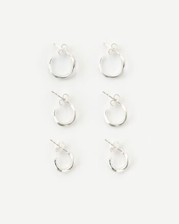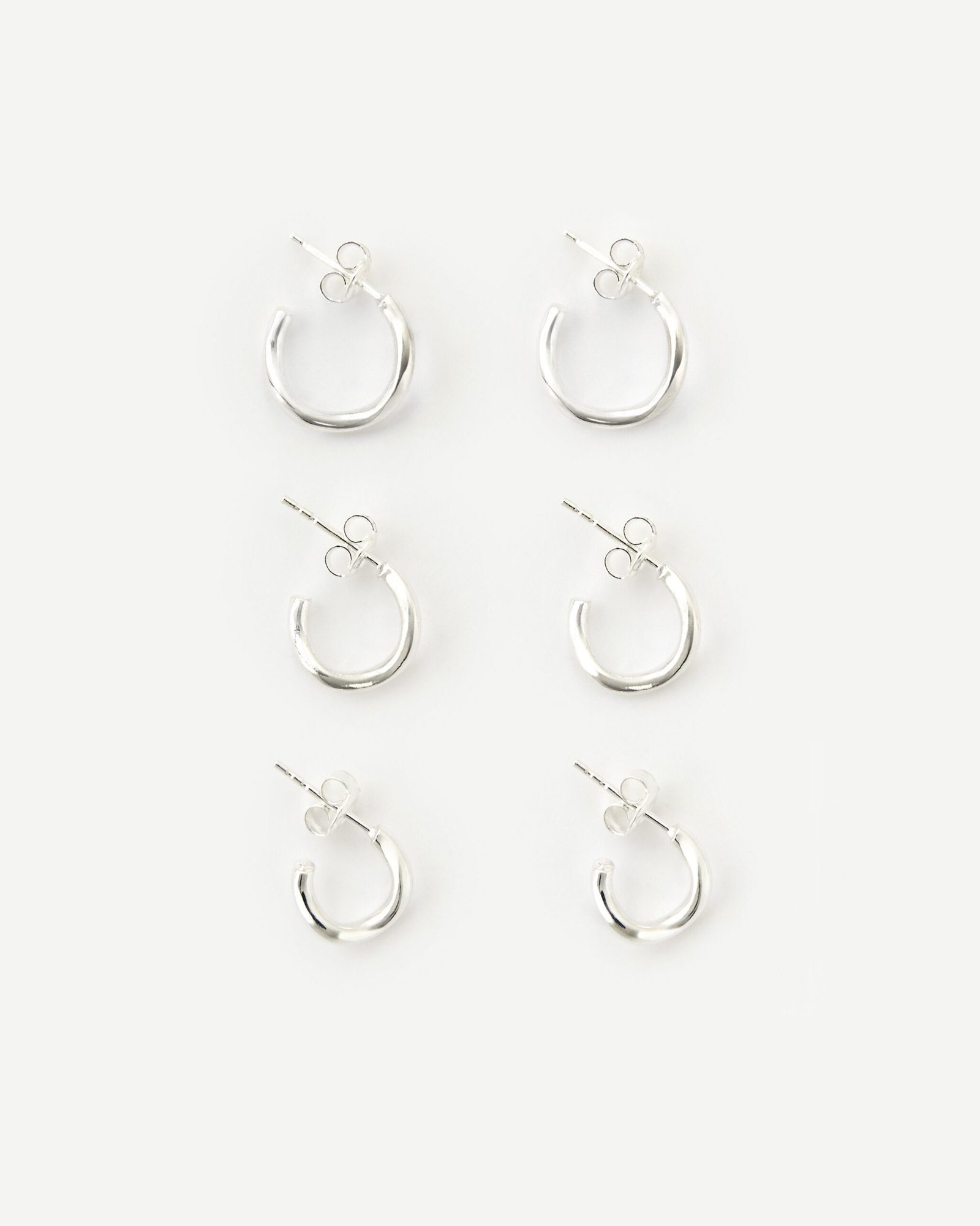 Kolczyki na sztyfice wykonane ze srebra próby 925 w kształcie nieregularnej fali, dostępne w 3 rozmiarach: petite 7mm, small 9 mm, medium 11mm.